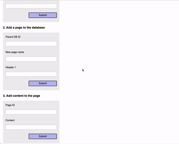 data.id). The ID will be required to make API requests to the Create a page endpoint, which is the next form in our completed demo’s UI.