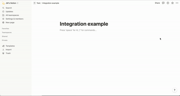 The database that we’re about to create will be added to a parent Notion page in your workspace. For your integration to interact with the page, it needs explicit permission to read/write to that specific Notion page. To give the integration permission, you will need to:1