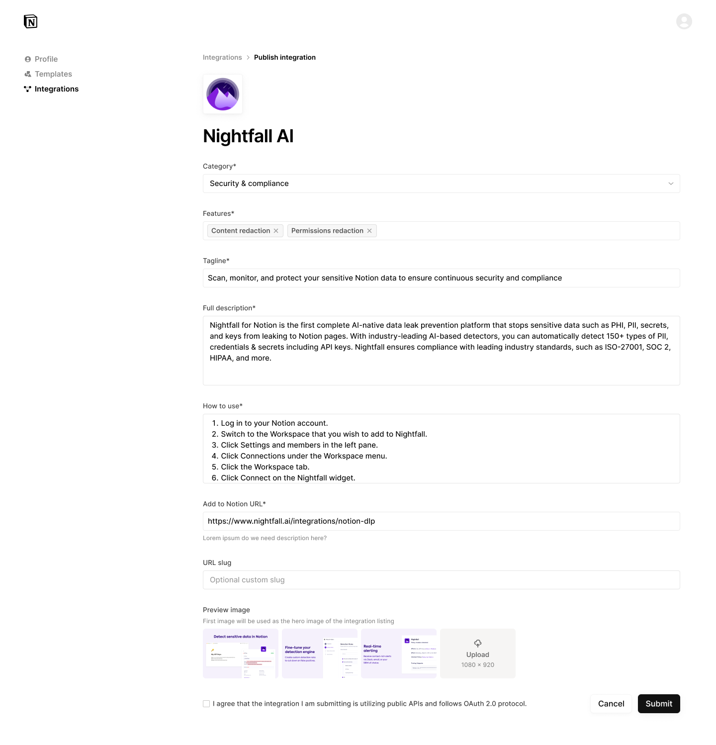 Interested in understanding more about the review process and best practices to be approved for publishing? Check out this guide: Notion Integration Gallery Best PracticesFrequently asked questions