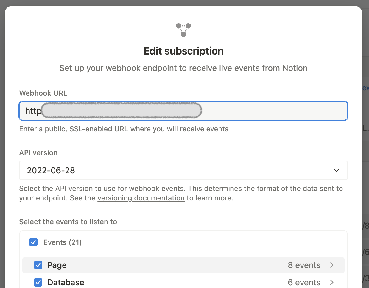 When creating, editing, or viewing an integration webhook subscription in Notion’s integration settings, there’s a new option to set the API version that applies to events delivered to your webhook URL: