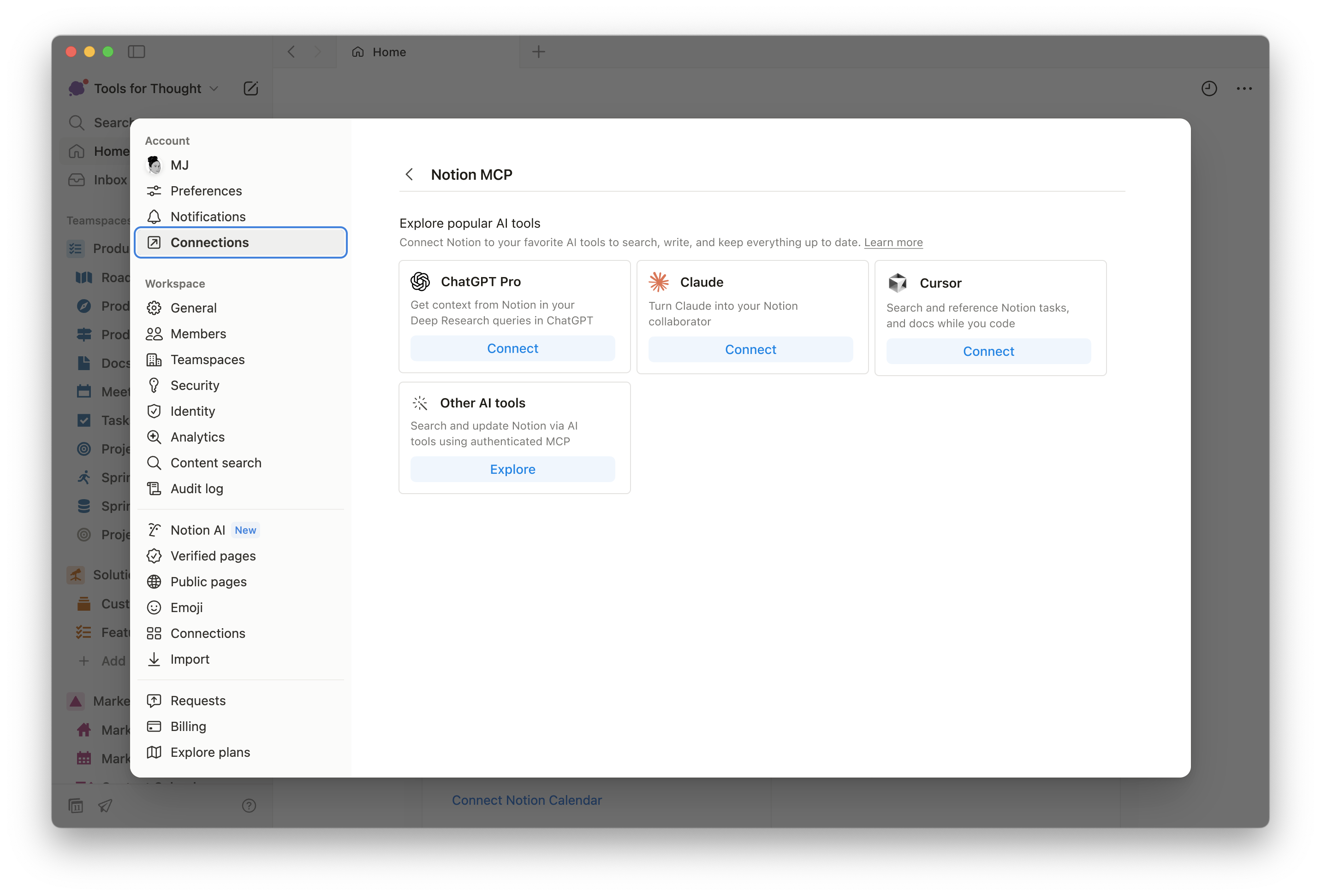 Some AI tools have MCP clients but don’t support remote connections. If this is the case, you may still be able to connect to Notion using our open-source MCP server.