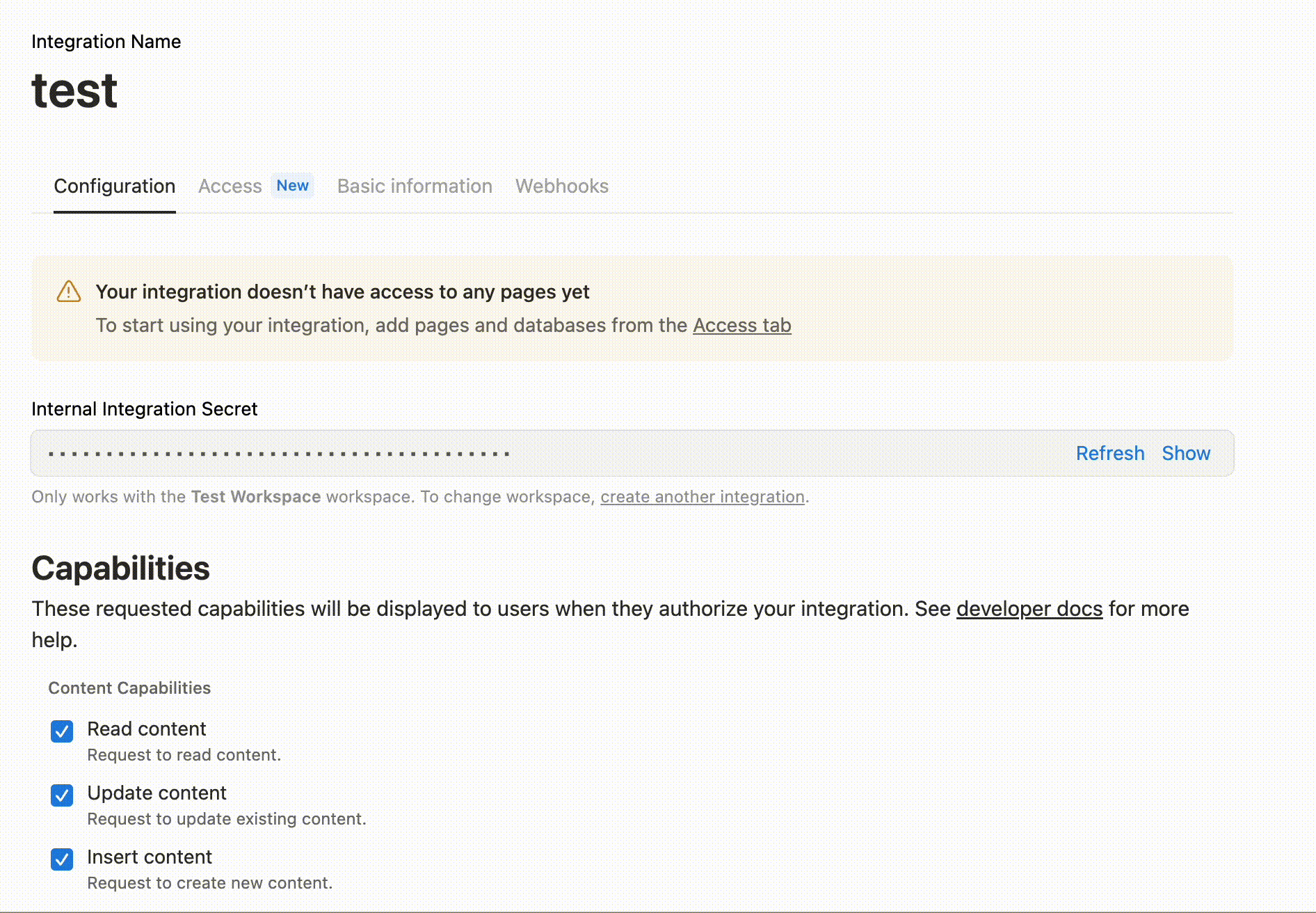 - Never post your key publicly: Avoid sharing your API key in public spaces such as forums, emails, or support tickets, with the Notion support team.