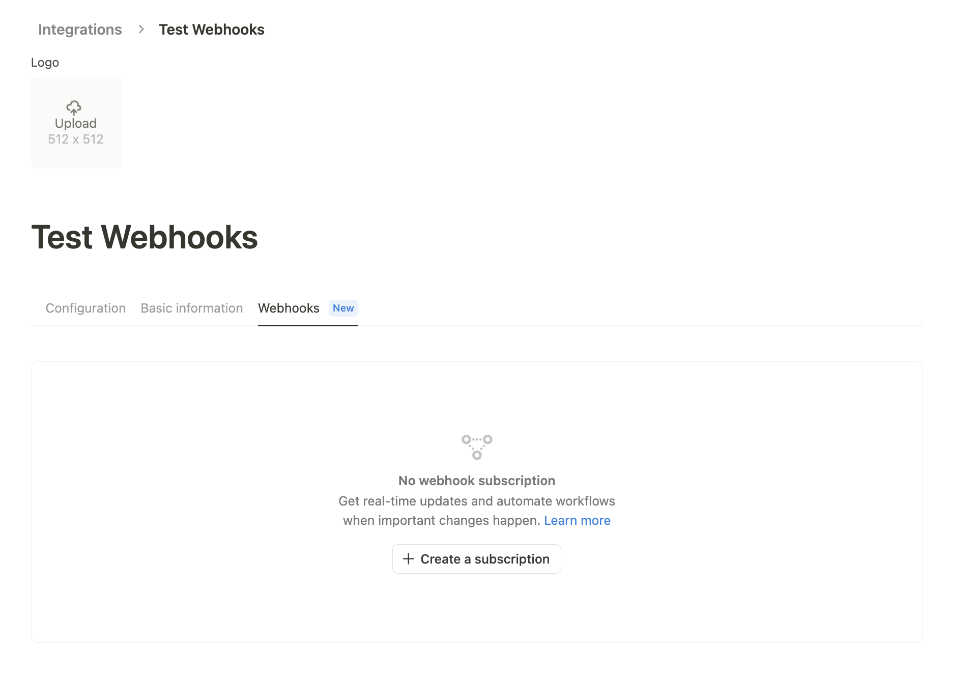 To receive webhook events, you’ll need to create a subscription through your integration settings. You’ll need to:Visit your integration settings.